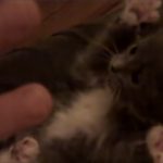 Pieni suloinen kissanpentu yllättyy hellyttävästi kutitusleikissä aina uudelleen ja uudelleen.